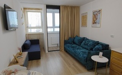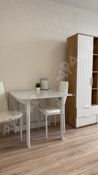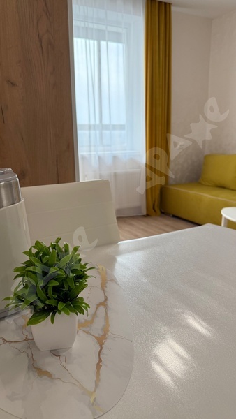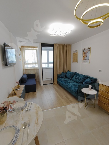 квартира 25кв.м., этаж 14/18, дом теплый, отопление регулируется, большие французские окна в пол. Квартира новая, полностью обустроена для проживания. Из мебели: диван, стол, стулья, вместительный шкаф в коридоре. Из техники: холодильник, плита, духовой шкаф, стиральная машина. Все как на фото.