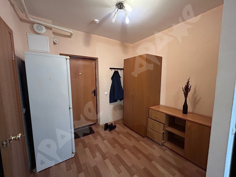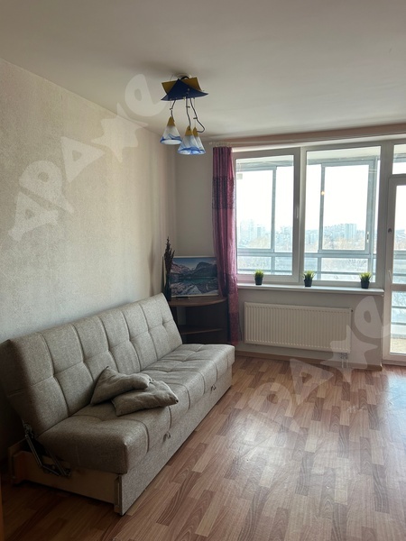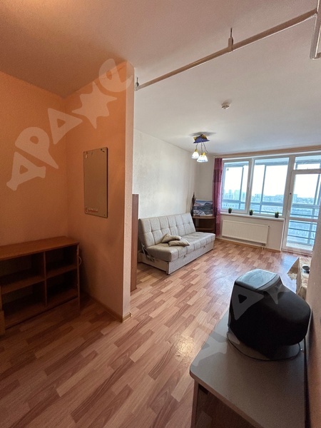 квартира на 13 этаже, из мебели есть диван, шкафы, кух. гарнитур, стол, стулья. Из техники: холодильник, стиральная машина.