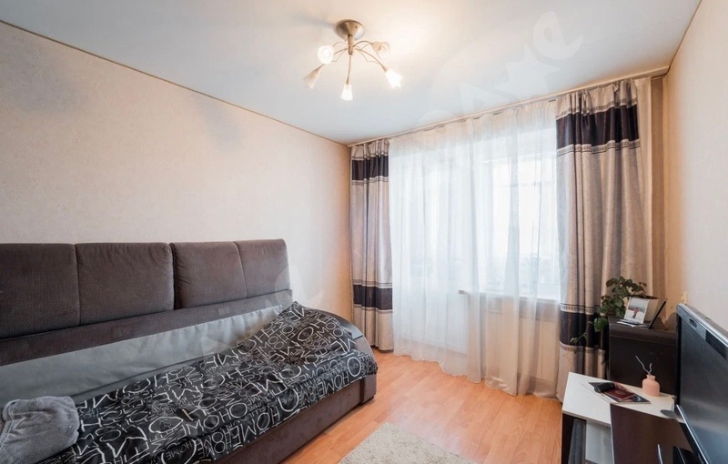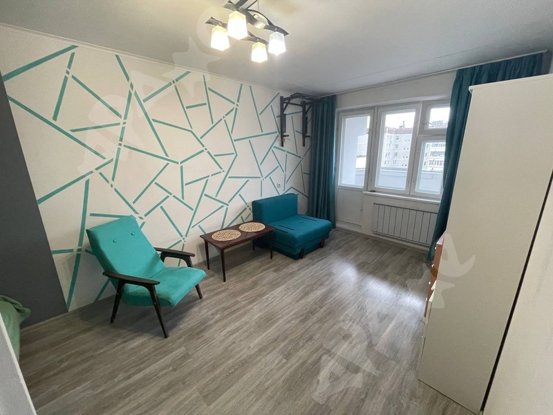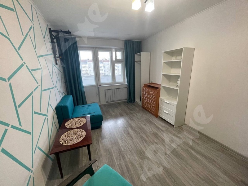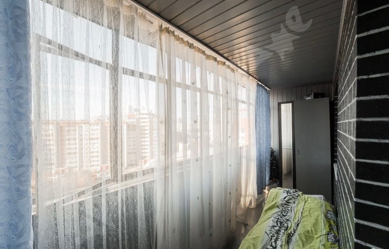 Комната и кухня изолированы. Большая лоджия вдоль кухни и комнаты. Окна выходят во двор, в квартире тихо.
