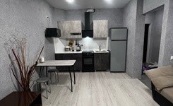 Студия полностью укомплектована : кухонный гарнитур с бытовой техникой, стиральная машина, душевая кабина, вместительные шкафы, рабочий стол, WiFi роутер.