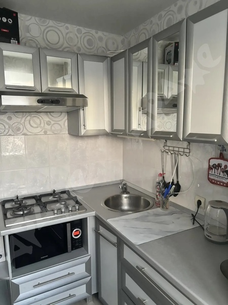 Площадь квартиры 33кв.м., кухня 9кв.м., этаж 4\9, есть балкон, дом кирпичный, сан узел совмещённый, ремонт косметический, как на фото, мебель как на фото, на кровати отличный хороший матрас и так же могу дать вам доступ к бесплатному интернету.