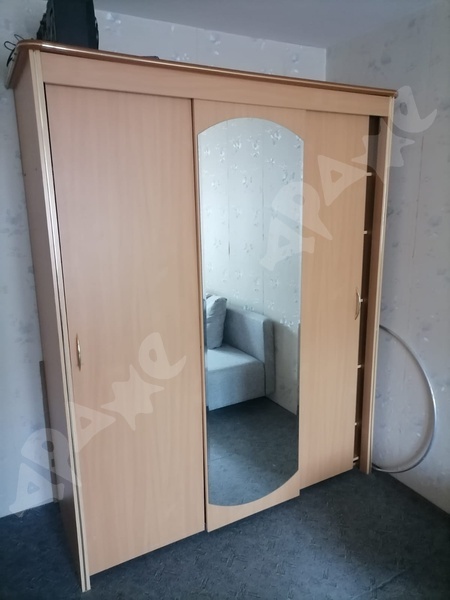 • в спальне – диван, стол и вместительный шкаф-купе;