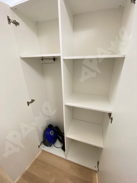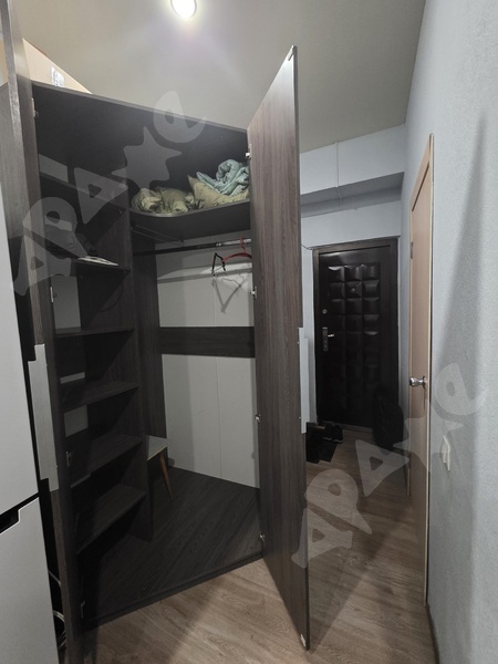 Укомплектованная кухня, большой шкаф-купе в прихожей, платяной шкаф на лоджии для дополнительного хранения.