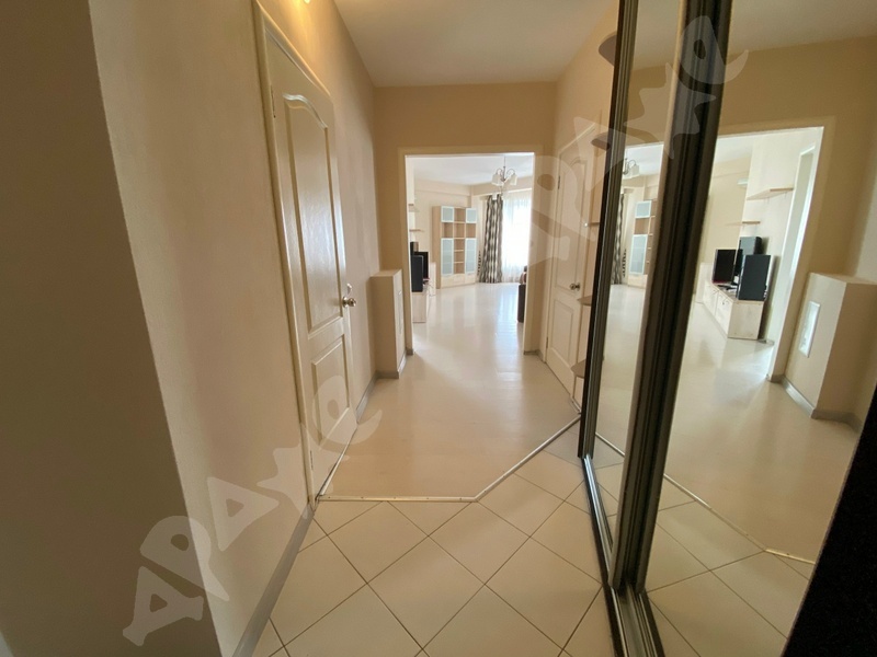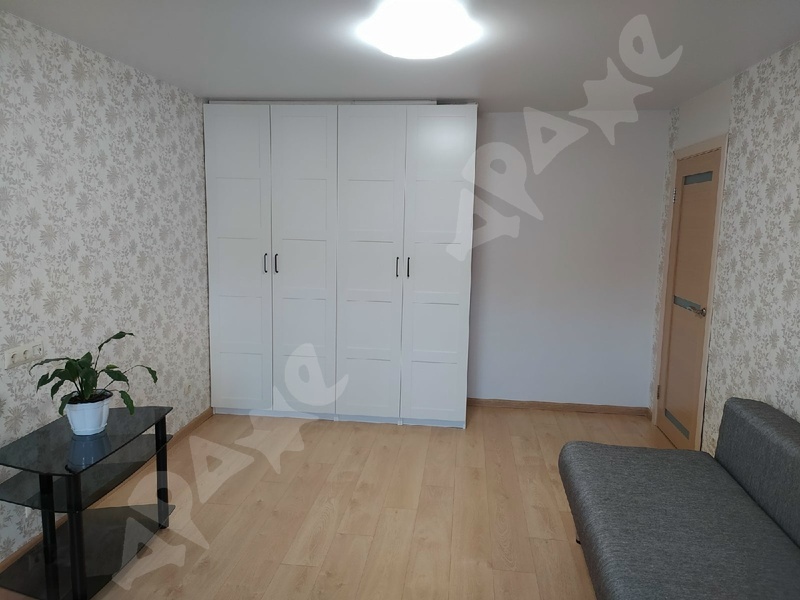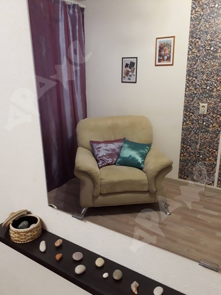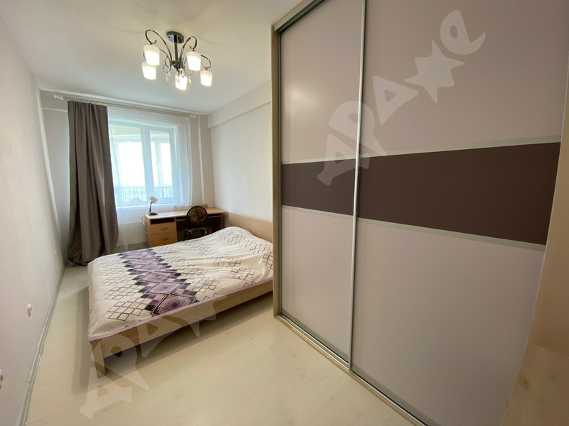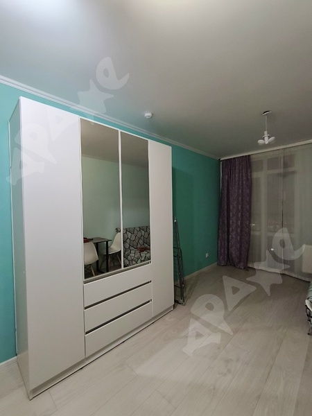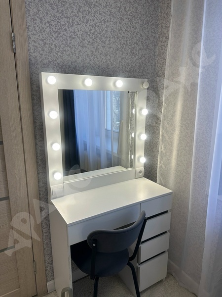 Также в квартире расположена просторная двуспальная кровать с ортопедическим матрасом (под кроватью есть место для хранения вещей), туалетный столик, раскладной диван, несколько шкафов. Имеется застреленный балкон.