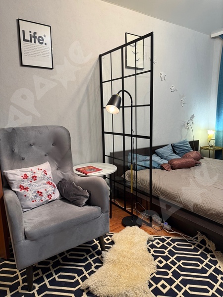 Квартира на 5 этаже, вся мебель и техника есть- кухонный гарнитур, холодильник, стиральная машина, диван и односпальная кровать, стол, шкафы, комод, телевизор. Можно с некрупными животными.
