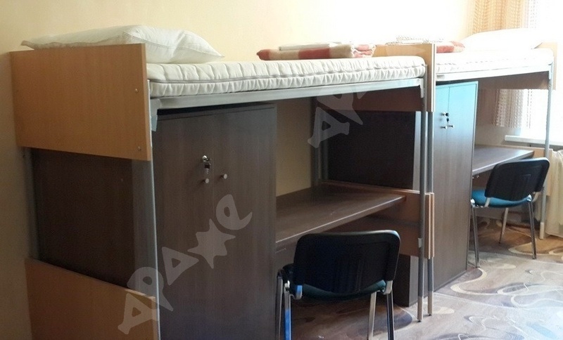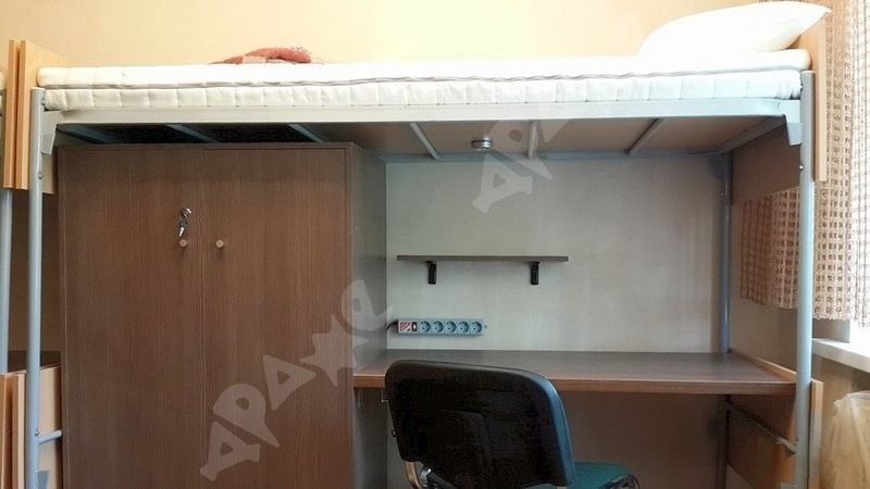 Есть все необходимое: своя кровать со всем постельным комплектом, вместительный шкаф с замком, свой стол и стул;
