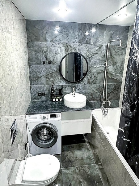 В ванной на днях положу пластиковую панель от воды на стену (меняли старую ванную на новую ), унитаз также новый.