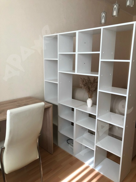 Мебель: диван двухспальный, стол большой для ПК, стул, тумба, комод, комод с зеркалом, два шкафа, пылесос, сушилка для белья, фен.