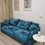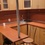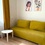Есть большой диван, два кухонных шкафчика, стол.
