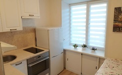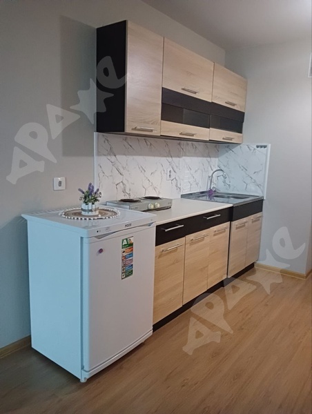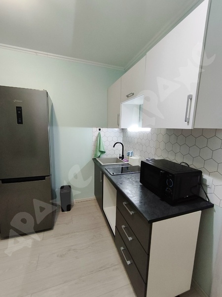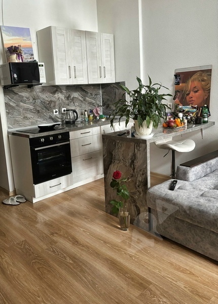 Имеется вся необходимая мебель и техника для комфортного проживания: кухонный гарнитур, варочная поверхность, микроволновка, чайник, телевизор (установим новый в выходные), стиральная машина, диван, шкаф для хранения.