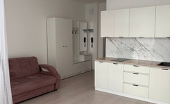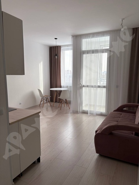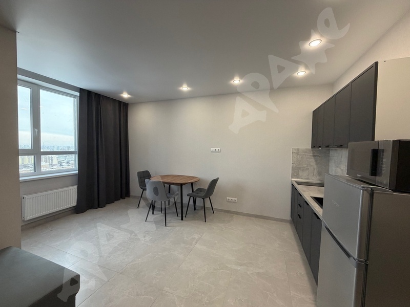Сдаётся чистая, уютная квартира - студия с современным ремонтом на длительный срок. Площадь 36м2, последний 26 этаж, дом 2017 года постройки с огороженной, охраняемой территорией. Рядом с домом аптека, перекрёсток, удобная транспортная развязка. Возможно проживание с животными и детьми. Квартира оснащена всей необходимой техникой: посудомойка, холодильник, кондиционер, индукционная плита, духовка, стиральная машинка. В ванной кафель и тёплые полы. Фото полностью соответствуют.