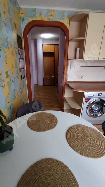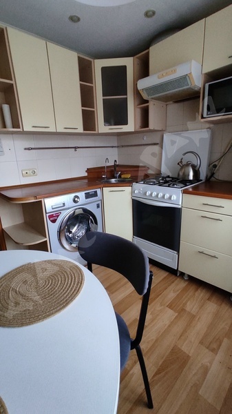 Этаж 3/9. Грузовой лифт. В квартире есть балкон и лоджия. Из мебели: кух.гарнитур, эл.плита, холодильник, микроволновка, эл.чайник, обеденная зона, диван, двухспальная кровать, шкаф в прихожей, стир.машина.