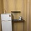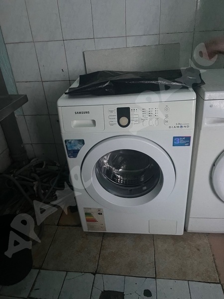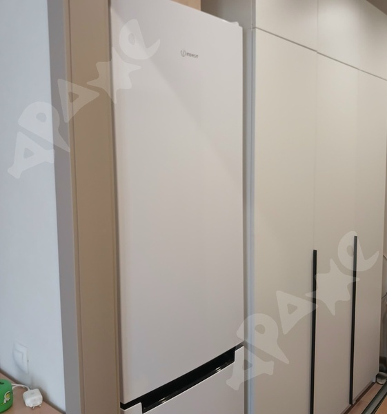 В комнате есть стиральная машина, холодильник,диван, шкаф, стол.