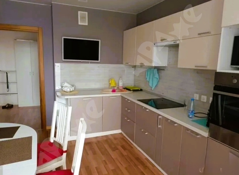 Кухня оборудована бытовой техникой: посудомоечная машина Hansa, духовой встроенный шкаф gorenji , СВЧ, индукционная варочная поверхность, встроенный холодильник, вытяжка, качественные смесители, телевизор, стиральная машина.