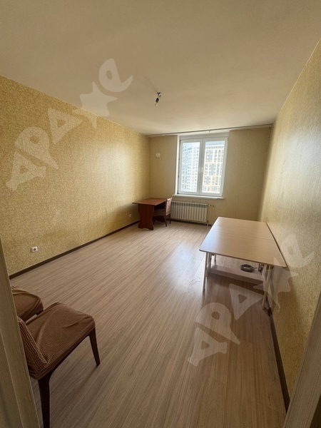 Площадь квартиры 82кв.м, кухня 21кв.м, этаж 9/25. Имеется большая лоджия. 2 большие спальни, отдельно кухня большая (можно использовать как кухня-гостинная). В квартире 2 больших санузла. Прекрасный вид из окон: одна сторона смотрит на лес, другая во двор. В доме также работают 3 лифта. Во дворе своя детская площадка, детский сад, много магазинов, а также рядом (около дома) автобусная остановка. Из мебели: кухня, плита, обеденный стол, стулья, небольшая прихожая и комоды.