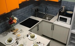 кухонный гарнитур, СВЧ, индукционная варочная, холодильник