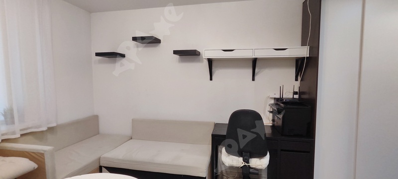 Есть все необходимое для комфортного проживания: раскладной диван, большой вместительный шкаф с множеством полок и двумя секциями для вешалок, компьютерный стол и компьютерный стул, полка для обуви, много мест для хранения.