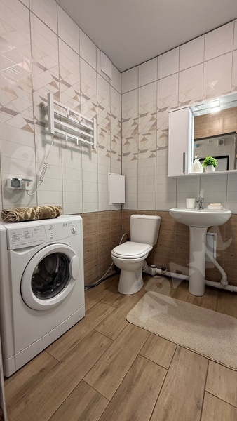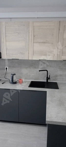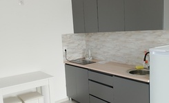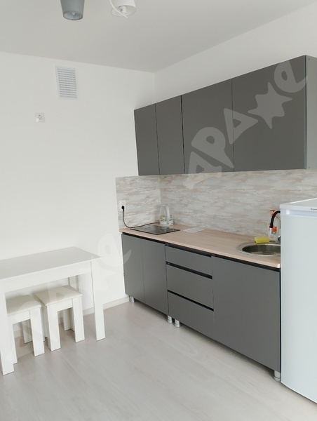 Имеется кухня с варочной панелью, холодильник, чайник, стол с табуретами, диван, стиральная машина. Всё новое. Предусмотрен депозит 15000, можно разделить.