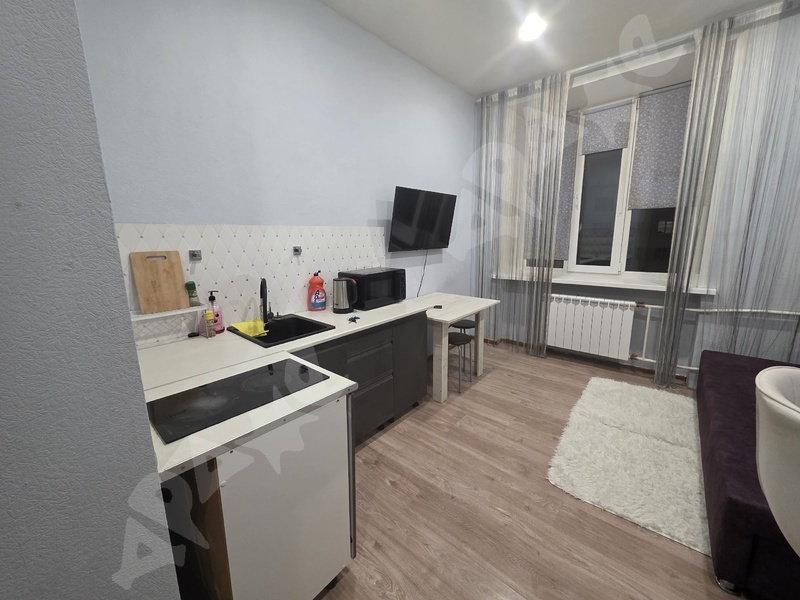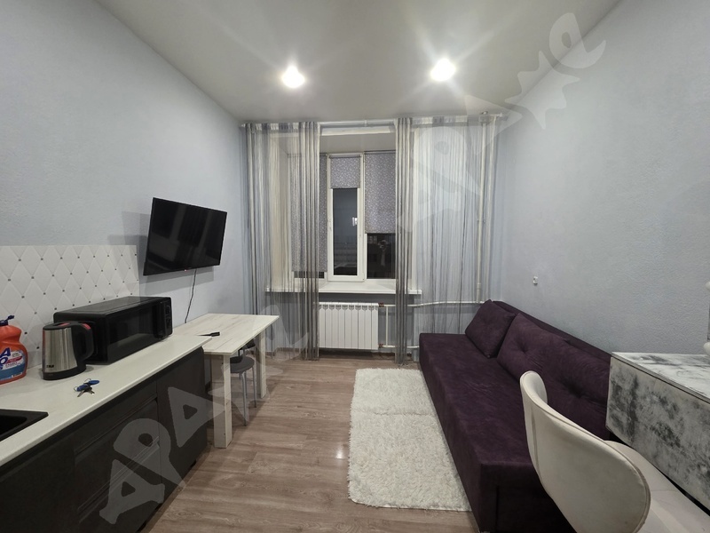 Капитальный ремонт произведен в 22 году. Квартира на 4 этаже (5-этажный дом). Площадь 18,4кв метров. Из мебели: кухонный гарнитур, шкаф, плита, холодильник, стиральная машина, микроволновка, стол, стулья, диван, трюмо, телевизор, чайник. Все как на фото. Сан.узел совмещённый, так же имеется сан.узел на этаже. Курение строго на общей кухне на этаже. Пластиковые окна выходят на соседний тихий двор. Соседей не слышно. Предоплата за месяц вперед.