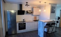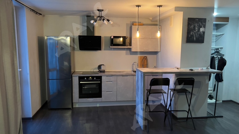 Сделан достойный ремонт с использованием итальянских и немецких материалов. Вся мебель приличная, телевизор плазма 42 дюйма. Кровать 180 см, диван в комнате, угловой шкаф купе и прихожая в коридоре! Установлена кухня Лорена, холодильник, встроенный духовой шкаф и варочная поверхность, чайник, утюг, микроволновая печь, гладильная доска, сушка для белья... тв и интернет...все есть для комфортного проживания.
