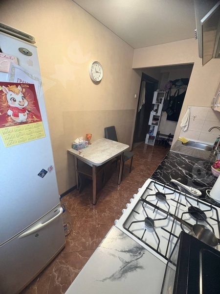 В квартире есть: Кухонный гарнитур, газ. плита, холодильник, стиральная машина, диван, шкафы.