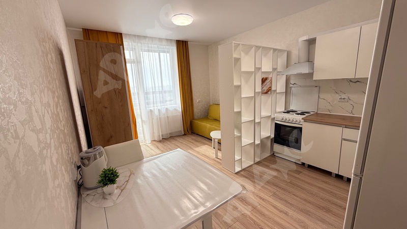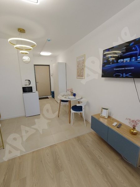 просторная студия 35 кв, с отделенной зоной кухни.