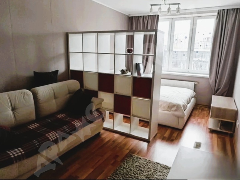 Из мебели: удобный диван-кровать, раскладывающийся в полноценную двуспальную кровать,вместительный шкаф, обеденная зона, кухонный гарнитур.