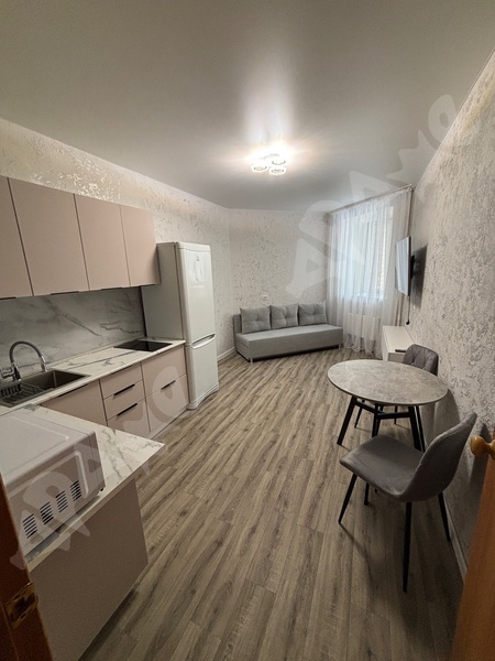Сдается на длительный срок новая, со свежим ремонтом и мебелью квартира-студия в современном районе. Квартиру изначально планировали сдавать посуточно, поэтому есть все и даже больше: фен, банные полотенца, постельное белье,утюг, посуда, столовые приборы, бокалы,стаканы на 4 персоны,новая сковородка ,кастрюля ,новое ведро швабра .В квартире есть вся необходимая техника: холодильник, микроволновая печь, чайник, смарт-ТВ, стиральная машина, фен,
