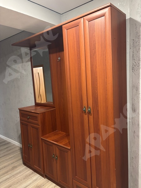 - Вместительный шкаф для одежды, вешалка для верхней одежды, дополнительные крючки для организации хранения.