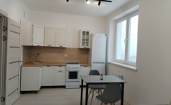 В квартире выполнен аккуратный косметический ремонт. Есть вся необходимая мебель и техника для комфортной жизни: кровать, диван, вместительные шкафы, полностью оборудованная кухня, посудомоечная машина, холодильник, стиральная машина, телевизор, подключен интернет.