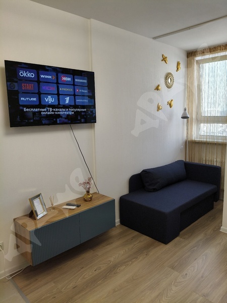 Есть стиральная машина, плита, холодильник, чайник, в скором времени добавится телевизор со SMART-TV. Много вместительных шкафов, диван раскладывается в два спальных места