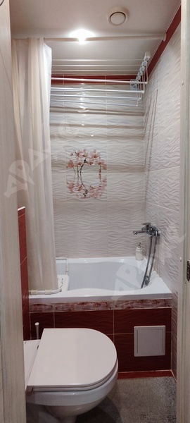 Совместный санузел. Так же имеется электрический полотенцесушитель и навесная сушилка для одежды.