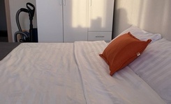 Квартира уютная с большой кроватью.