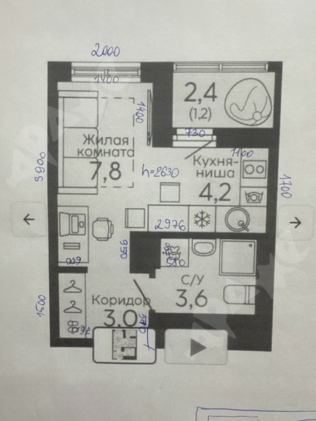 студия 26 кв.м. На 4 этаже с балконом