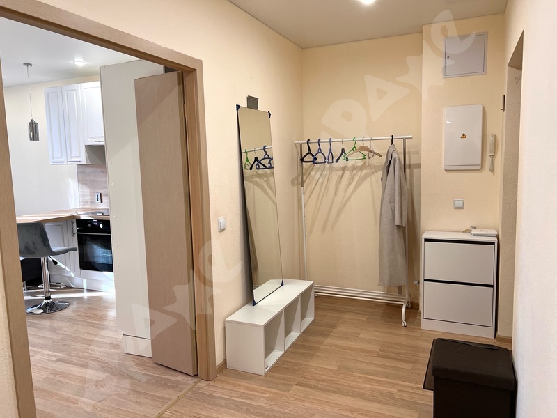 квартира на 5-м этаже, из мебели есть кровать, шкаф, диван, тв-тумба, прихожая, кухня с техникой, обеденная зона, водонагреватель. Все новое после ремонта - вы будете первый жилец.