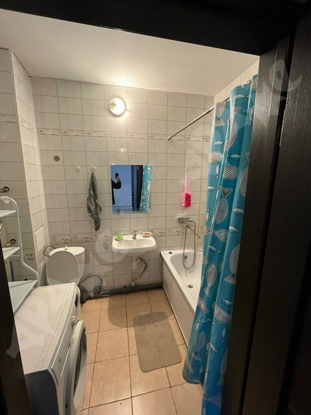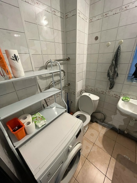 • Санузел совмещен с ванной комнатой, в которой имеются встроенные шкафы для хранения и стиральная машина.