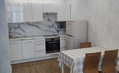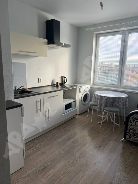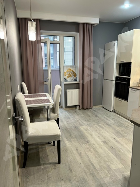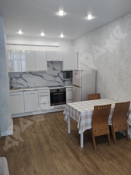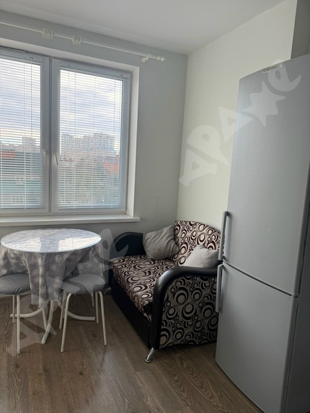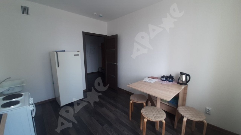 Площадь квартиры 34 кв.м., кухни — 14 кв.м., этаж 7/14, сан. узел совместный, ремонт евро (от застройщика). Наполнение: стол, табуретки, напольная вешалка для одежды, холодильник, стиральная машина, электроплита. Окна выходят во двор. Рядом вся инфраструктура (поликлиника, магазины, муз. школа, транспорт)