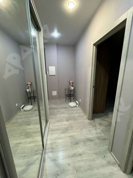 Квартира полностью мебелирована, есть гардероюная. Из техники есть стиральная машина, смарт ТВ, холодильник, электроплита с духовкой, чайник, пылесос, микроволновка.